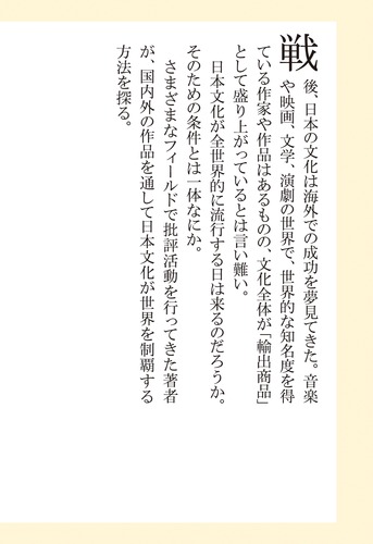 戦後、日本の文化は海外での成功を夢見てきた。音楽や映画、文学、演劇の世界で、世界的な知名度を得ている作家や作品はあるものの、日本カルチャー全体が「輸出商品」として盛り上がっているとは言い難い。